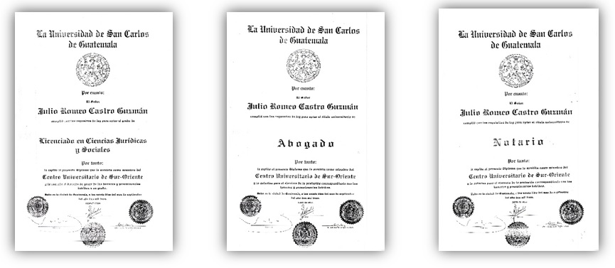 La Universidad de San Carlos de Guatemala y el Centro Universitario de Sur Oriente, CUNSURORI otorga los Títulos profesionales de: LICENCIADO EN CIENCIAS JURÍDICAS Y SOCIALES, ABOGADO Y NOTARIO.